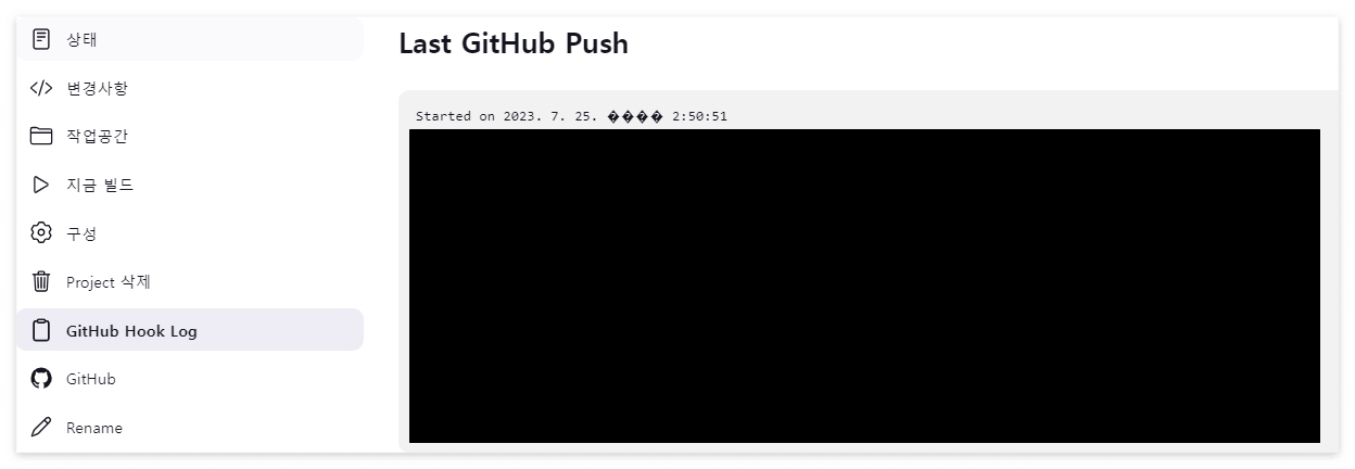 Github Hook Log에서 로그를 확인할 수 있습니다.